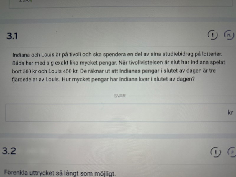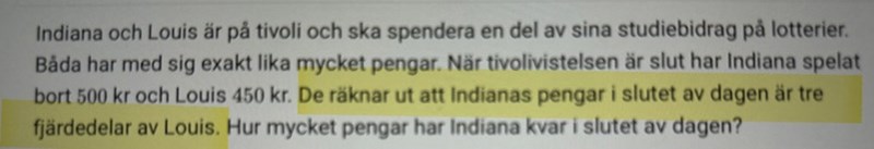 När dagen är slut så har Indiana x-500 kronor kvar och Louis x-450 kronor kvar.