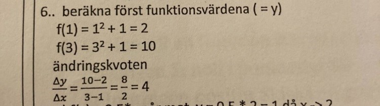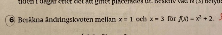 Beräkna ändringskvoten mellan x=1 och x=3 för f(x)=x^2 + 2