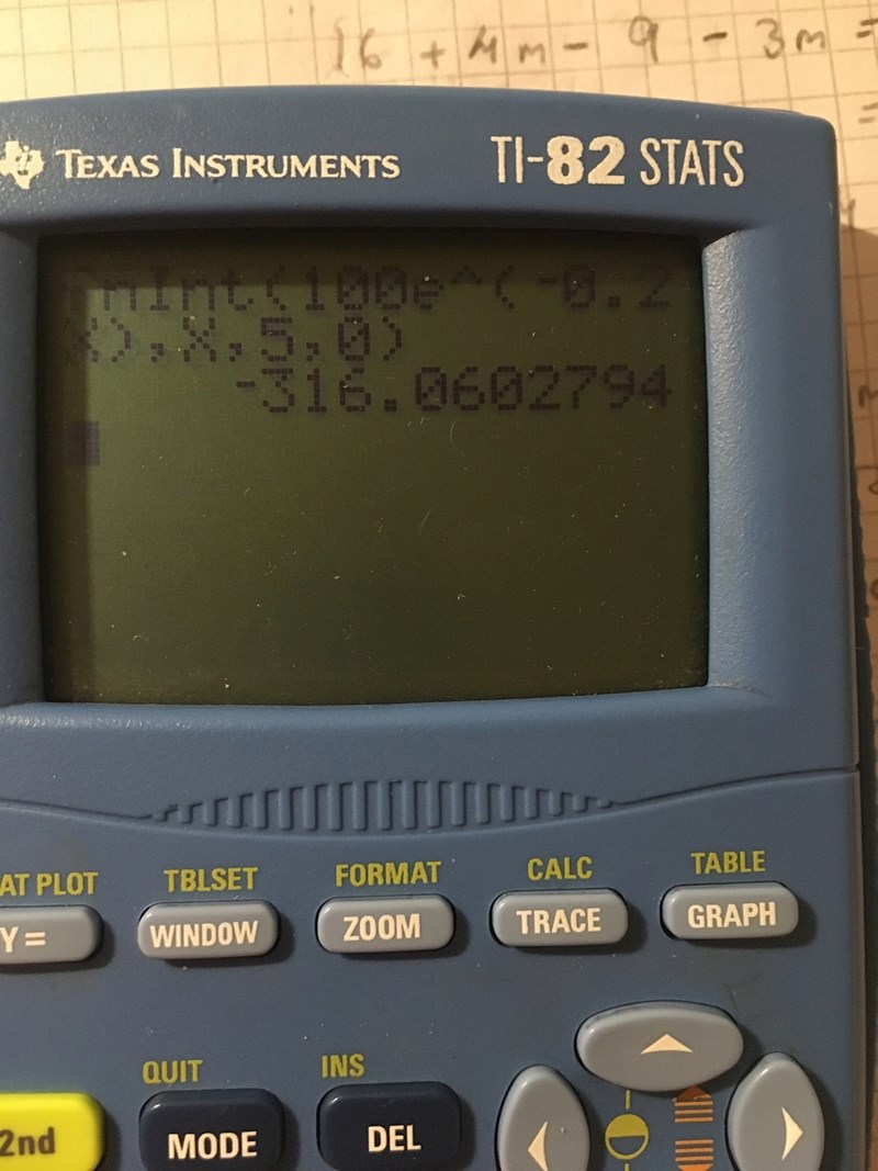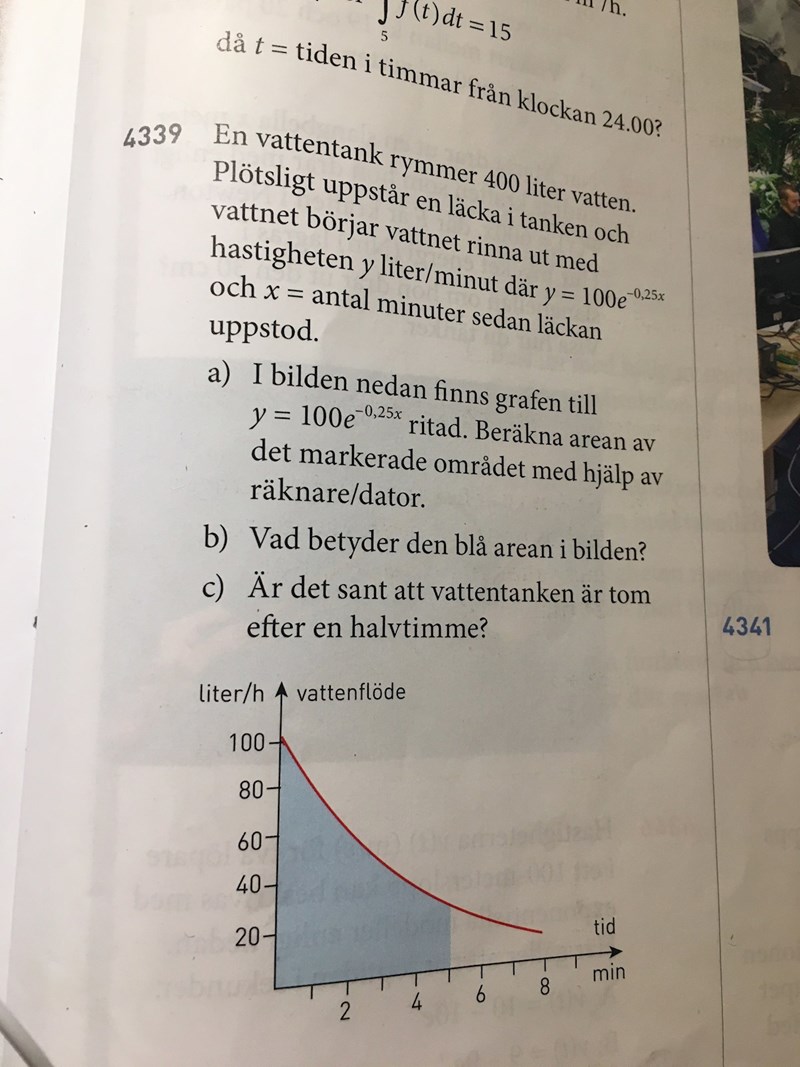 Det ska vara fnInt(100*e^(-0.25x),x,0,5)