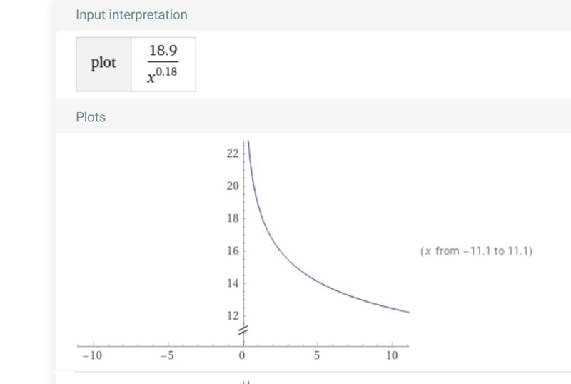 funktionen y = 18,9*x^(-0,18) är avtagande med ökande x.