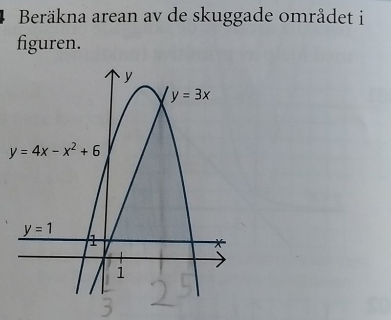 Skärningspunkten mellan 3x och parabeln verkar inte stämma. Sätt in x = 2.
