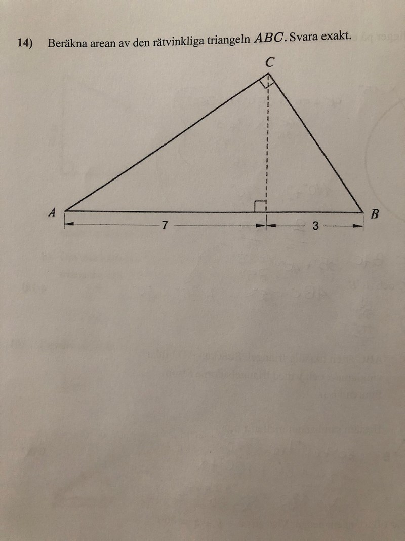 Jag har ingen uträkning få jag inte förstår hur man ska kunna räkna ut arean utan att veta höjden på triangeln.