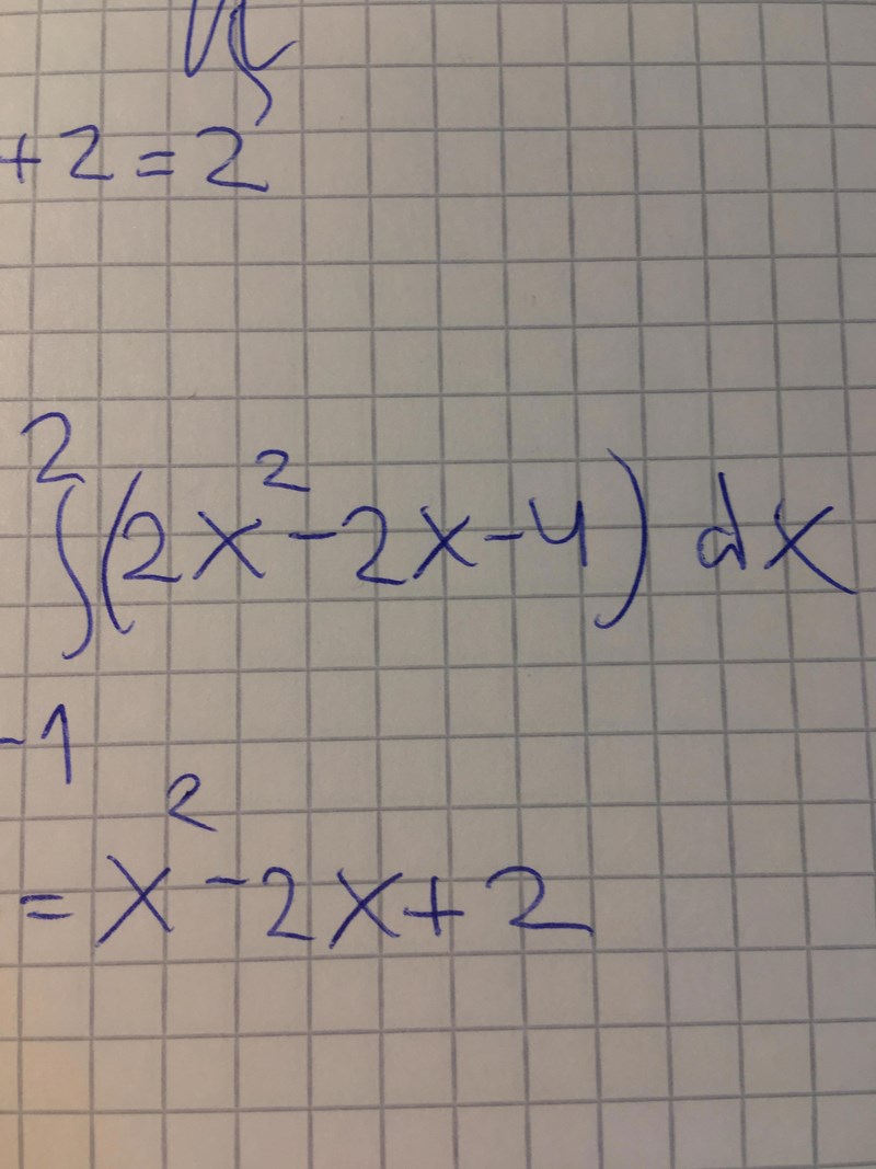 Mariz98 skrev:Har beräknat gränserna och nu ska jag beräkna integralen(arean) men funderar på om jag då ska använda andra kvadreringsregeln alltså (x-2)^2 fast då blir ju svaret fel eftersom det blir +2^2 och man byter ju tecken i pq och innan var det ju minus??