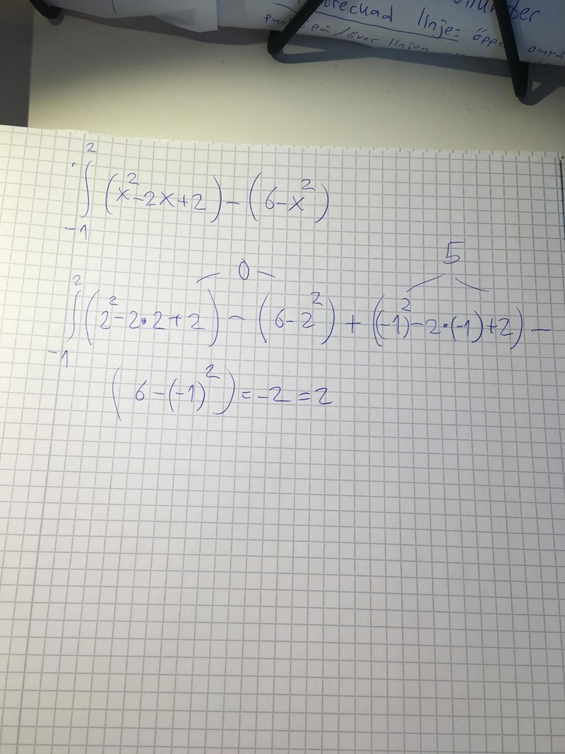 Okej det var så alltså, men ska jag ta både -1 och 2 i båda funktionerna sen minus varandra?