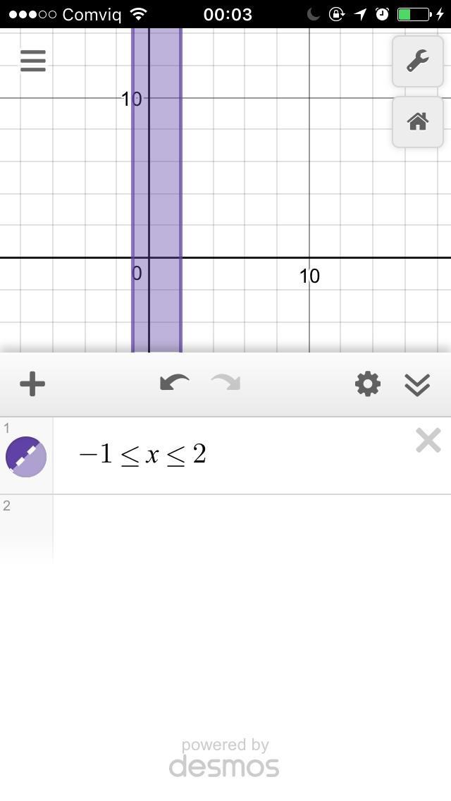 Rita bara in de två graferna i samma koordinatsystem. Vilken av graferna ligger ovanför den andra mellan gränserna -1 och 2?
