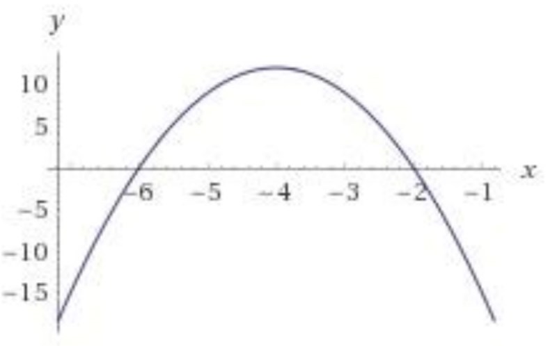f(x)=−3x^2−24x−36 och nedåt av x-axeln..
