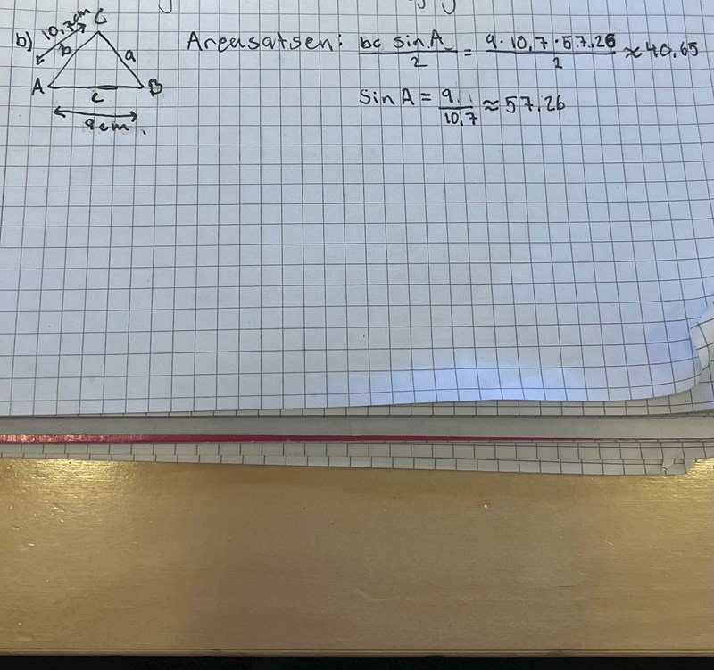 I formelsamlingen jag har står det att areasatsen är bc sin A/2.