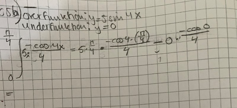 där f(x) är en funktion (här: 5sin4x) och F(x) är en primitiv funktion till f(x) (här: )