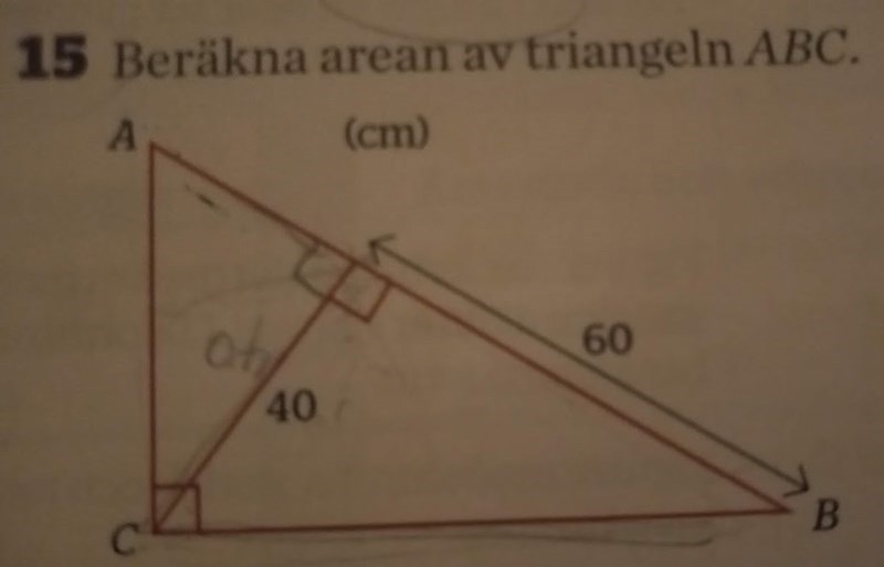 Beräkna arean av triangeln ABC.