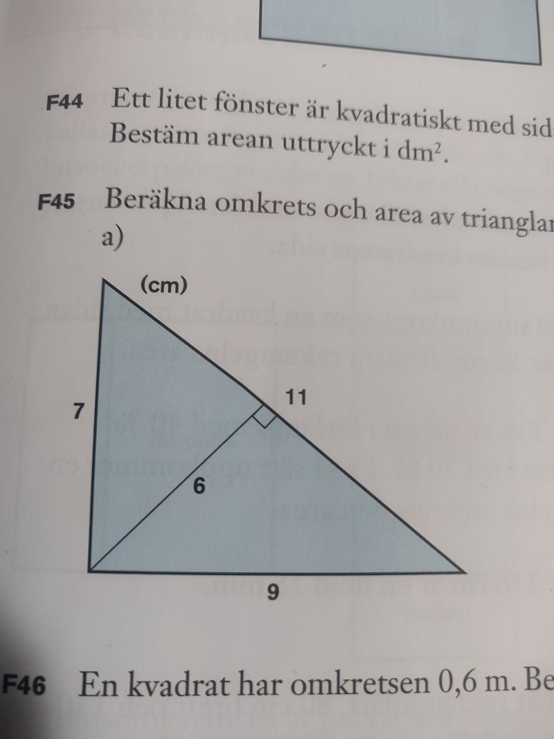 Det står faktiskt inte att vinkeln mellan sidorna 7 och 9 är 90 grader, även om det ser ut så.