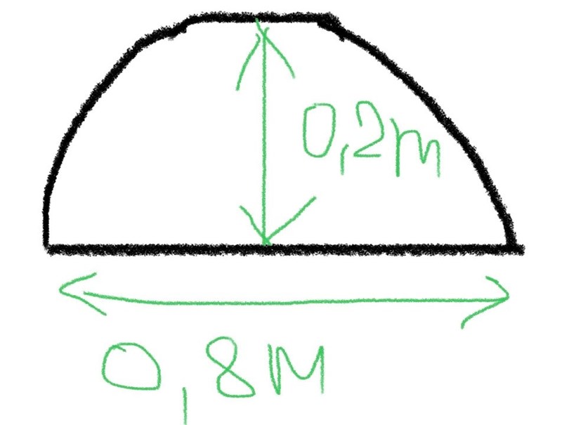 yes, så då är radien 0,4m? Då antar jag att jag kan lägga in det i ekvationen för att räkna ut arean av en halvcirkel