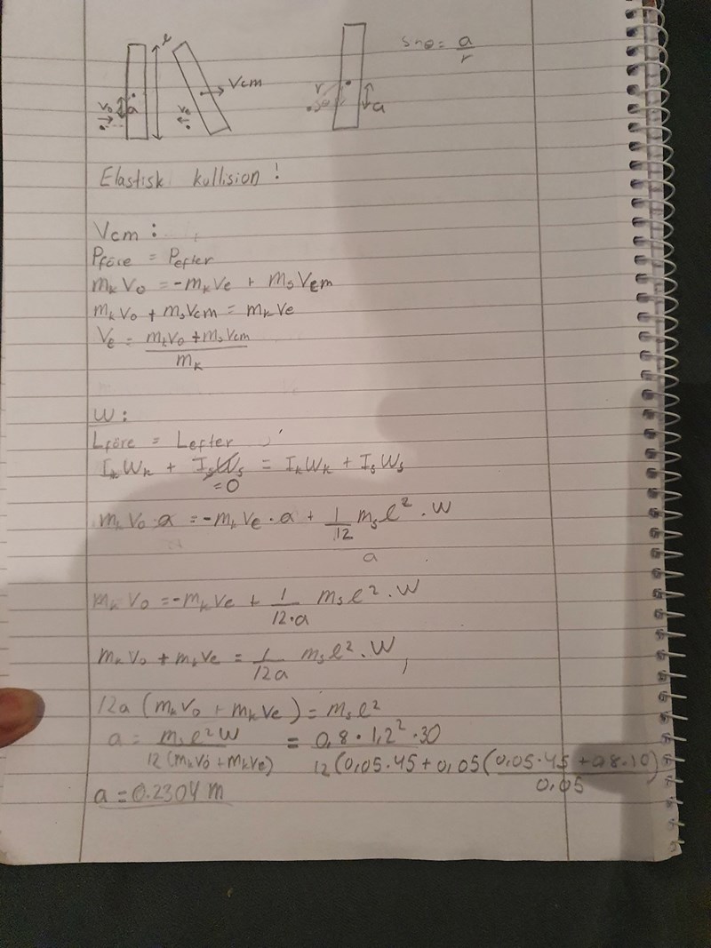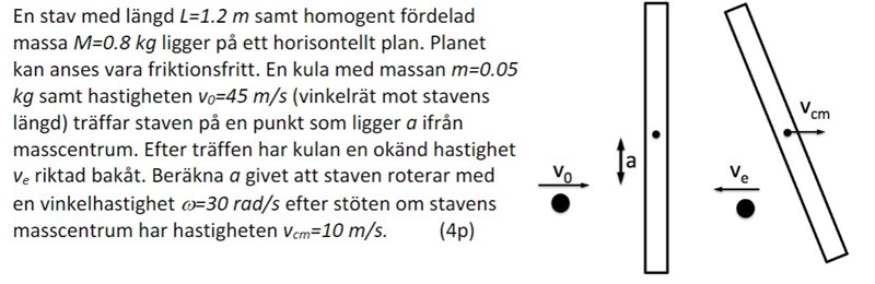Jag vill lösa denna uppgift, men jag fastnar med att teckna ett utryck för vinkel momentet för staven. Såhär gör jag, men det känns inte rätt.