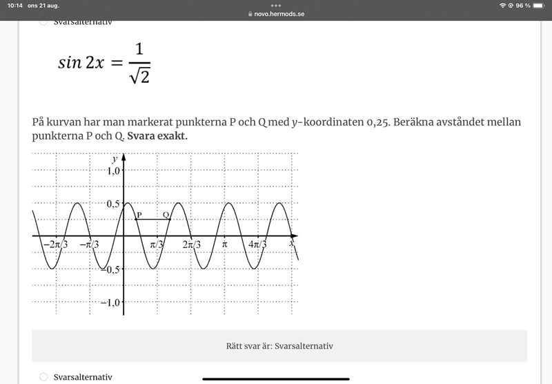 Tips 1: Ta hjälp av nollgenomgångarna vid -pi/3 och 2pi/3.