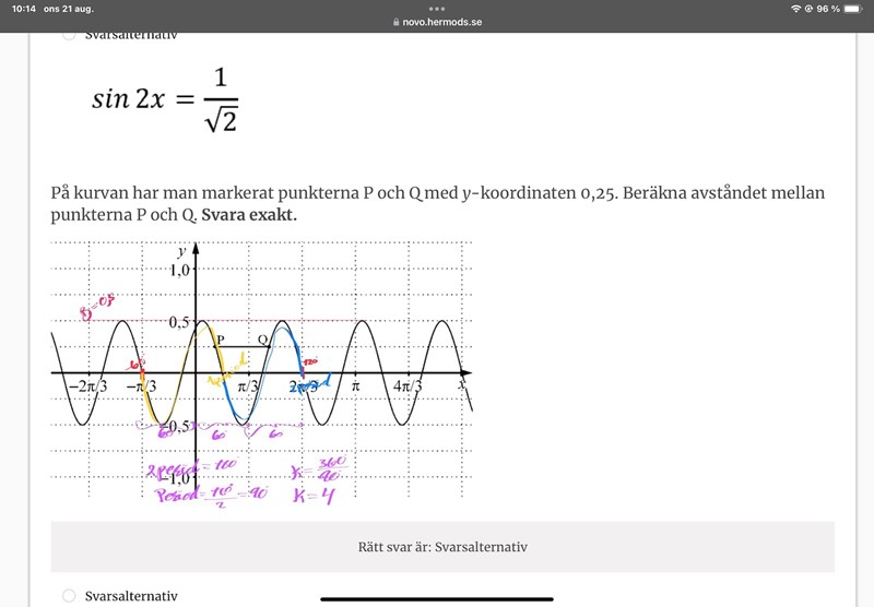 Jag tänkte dra en linje så att y=0,25. Sedan tänkte jag att man ska ta reda på vad y=Asink(x+v)+B blir för kurvan för att sedan sätta båda funktionerna lika med varandra. Jag kan avläsa från grafen att A=0,5, men hur gör jag resten?