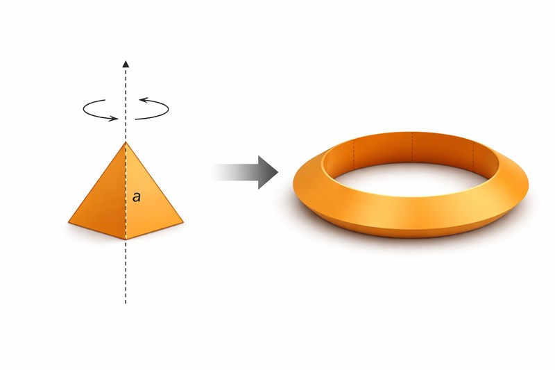 Du får toroiden genom att rotera en liksidig triangel kring en axel.