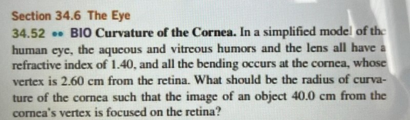 Nej...det är nog fel va...om ögat har en diameter på 2,7 cm så verkar det konstigt om hornhinnan har en radie på 4,88 cm?