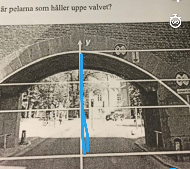 Vet inte hur man jobbar med bilder i Pluggakuten. Men du har en pelare på var sida av valvet. Avståndet mellan dem är 6,6 m. Det efterfrågade är bredden på den sida av en pelare som vetter mot oss. Alltså en horisontell sträcka.