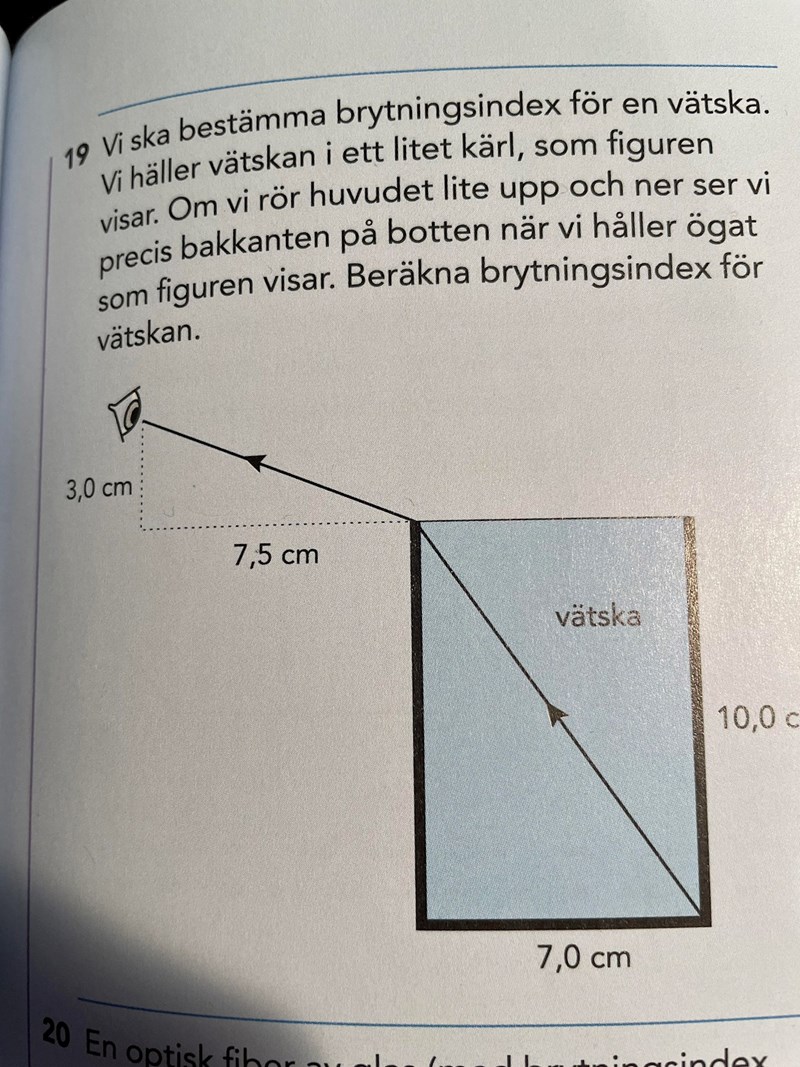 Beräkna brytningsindex, en till synes enkel uppgift. Bifogad uppgiftbild och facit medföljer