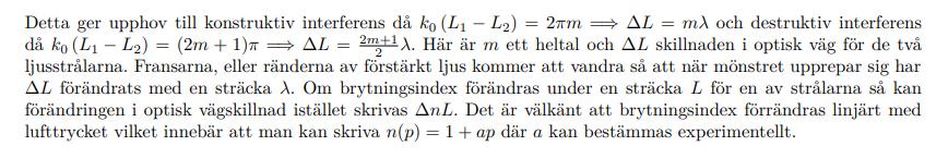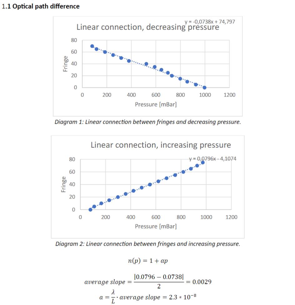 Hej, jag har gjort ett labb om ljus och interferensmönster med laser. Under labben undersökte vi hur snabbt fransarna från laser rörde sig i takt med att trycket i behållaren som laser lyste igenom sjönk.