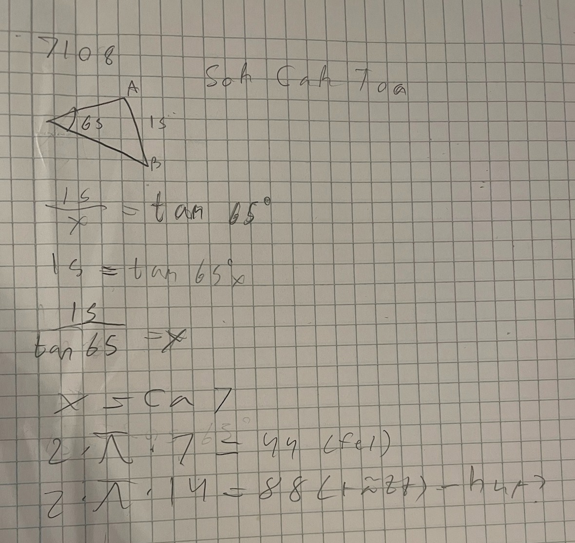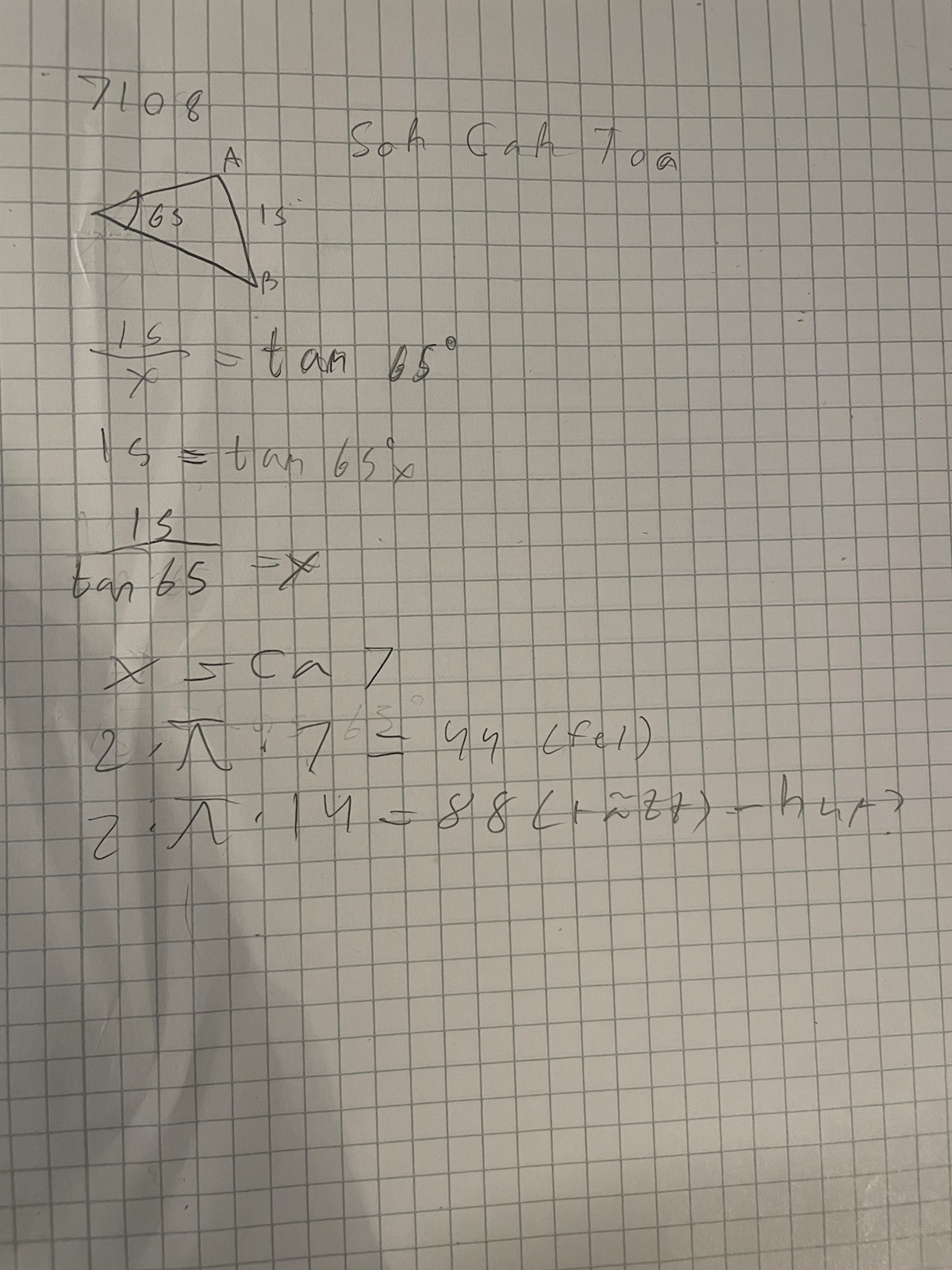men om jag sätter radien som 14 blir det rätt då 2 * pi * 7 = 88 cm. Vad gör jag för fel? Såhär fick jag 7 cm: