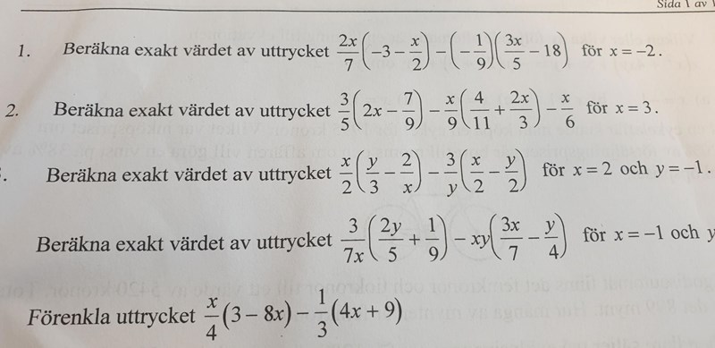 jag har börjat med den första (fråga 1) genom att byta ut alla X mot -2 men vet inte hur jag ska fortsätta.