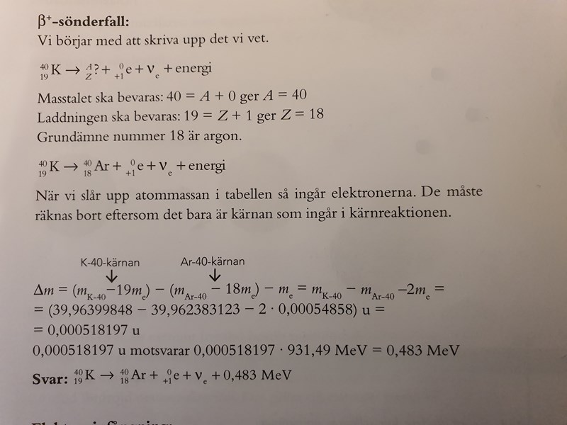 Hej! Jag undrar en sak om denna uppgift: "Beräkna den frigjorda energin för β+-sönderfall av Kalium-40."