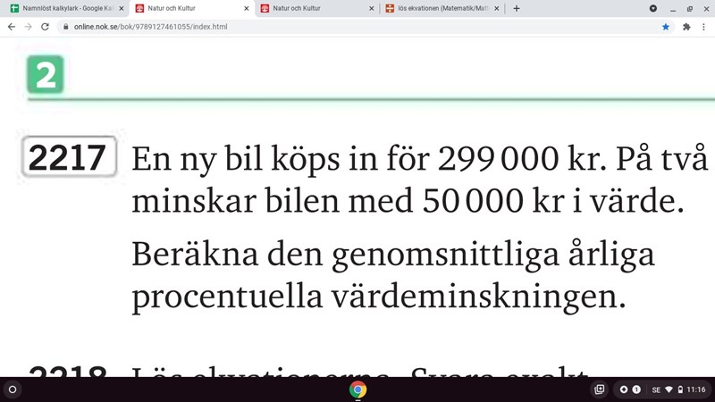 Vi ser direkt att x<1 som det ska vara, när det är fråga om en värdeminskning.