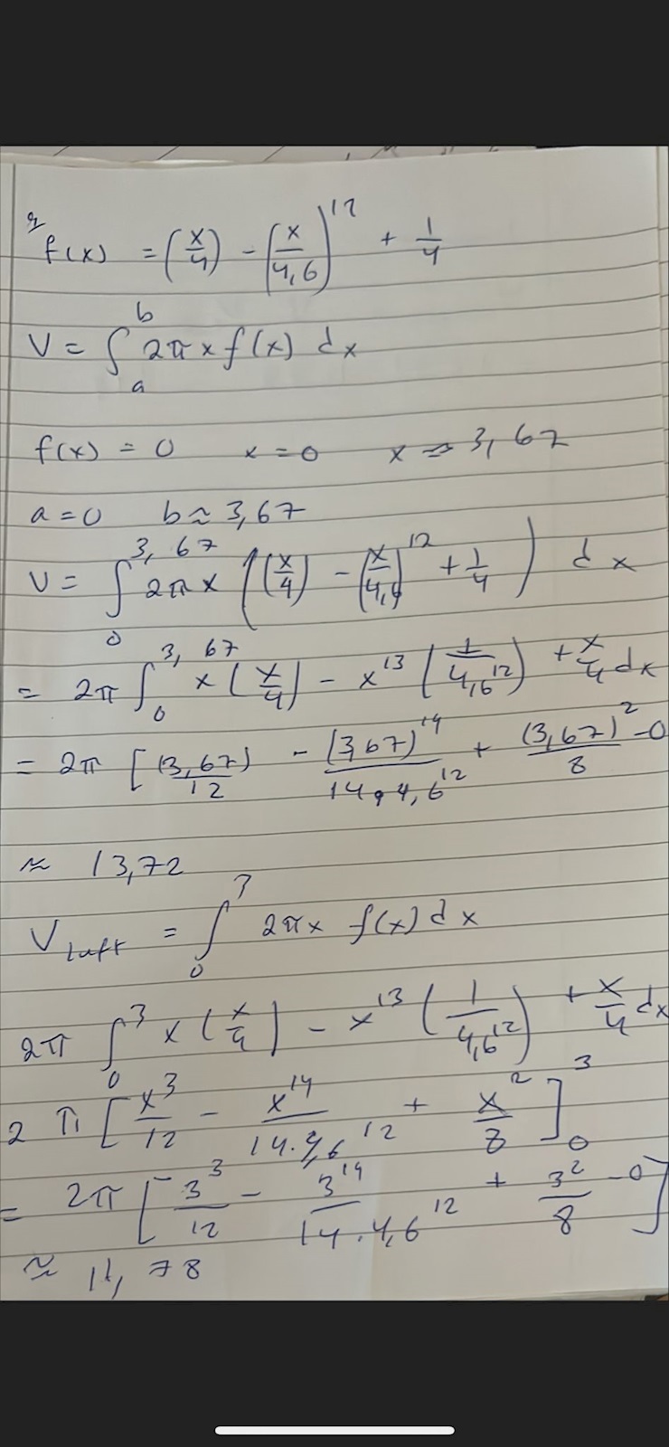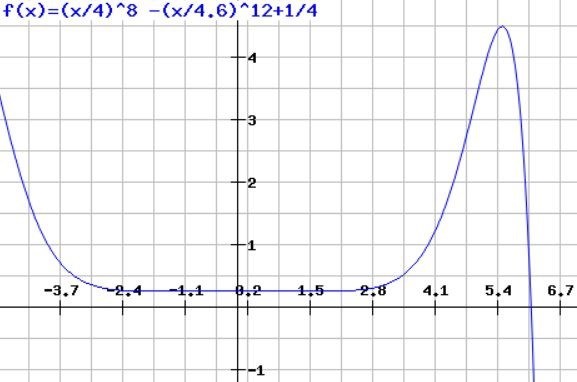 Saruman Har ett dryckesglas vars profil begränsas av funktionen f(x)=(((x)/(4)))-(((x)/(4.6)))^(12)+((1)/(4)) och x-axeln. Om man roterar funktionen runt y-axeln så får man volymen av glasmassan.