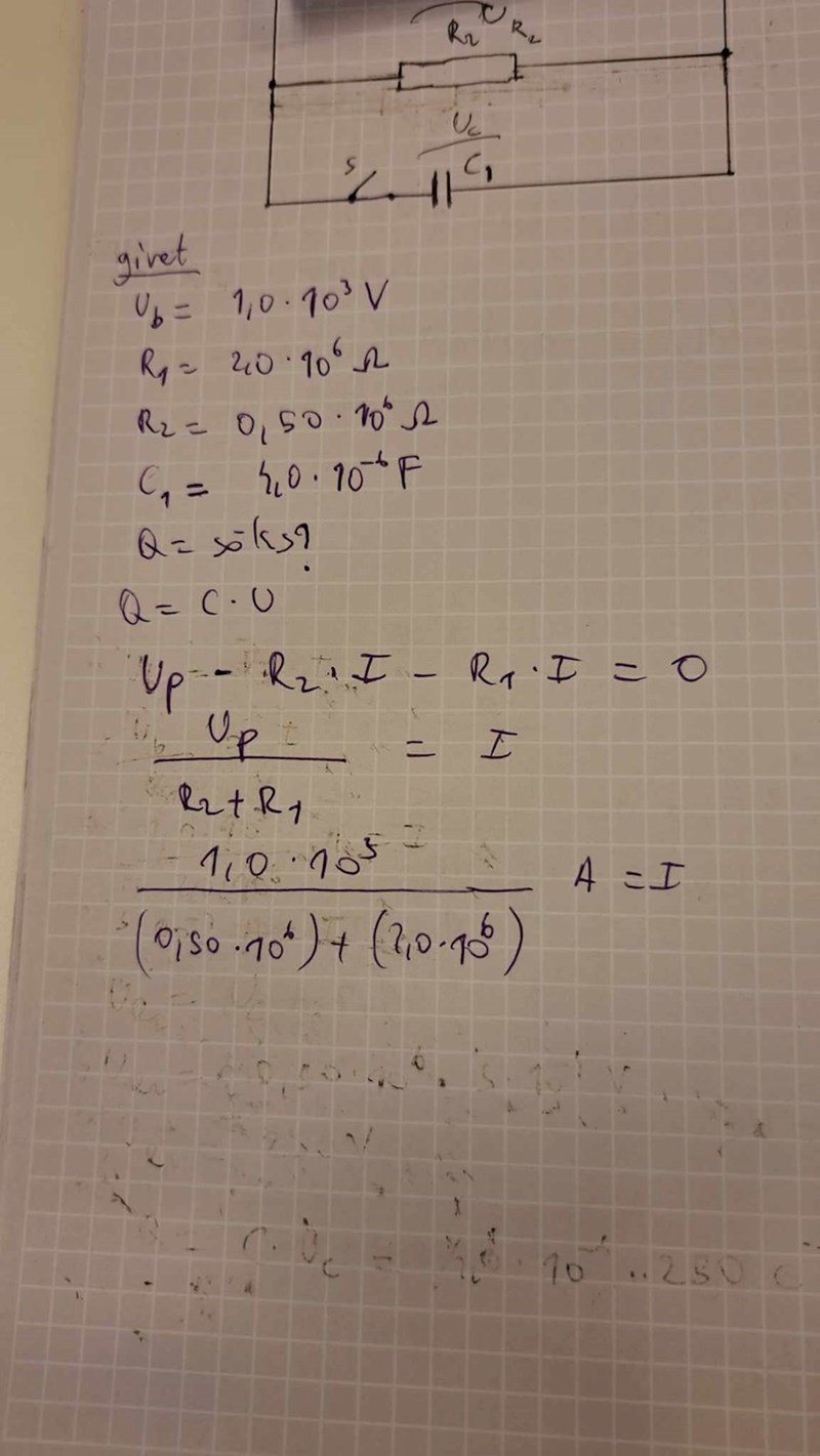 Jag lyckades räkna ut strömmen. Hur gör jag för att få spänningen över C?