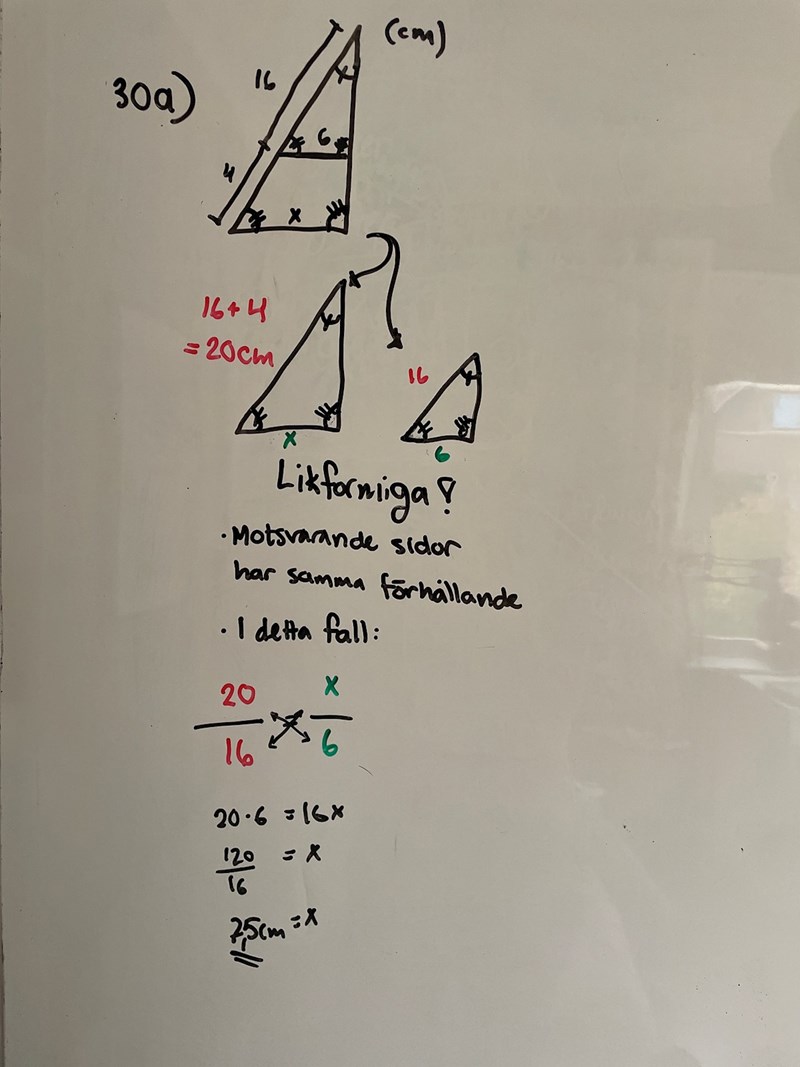 Hejhej behöver också hjälp med den, skulle du kunna förklara det med utbytet av 20/16=x/6? Tack så mycket!