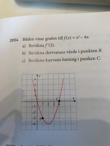 Jag har lite svårt att beräkna derivata genom att titta på en graf så jag skulle behöva lite hjälp med denna uppgift..