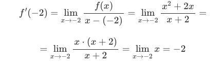 Derivatan är ett gränsvärde av tyoen 0/0. I ditt fall är kvoten (x^2+2x)/(x+2). Vad är det du undrar över? Man har inte "tagit bort f(x) från täljaren".