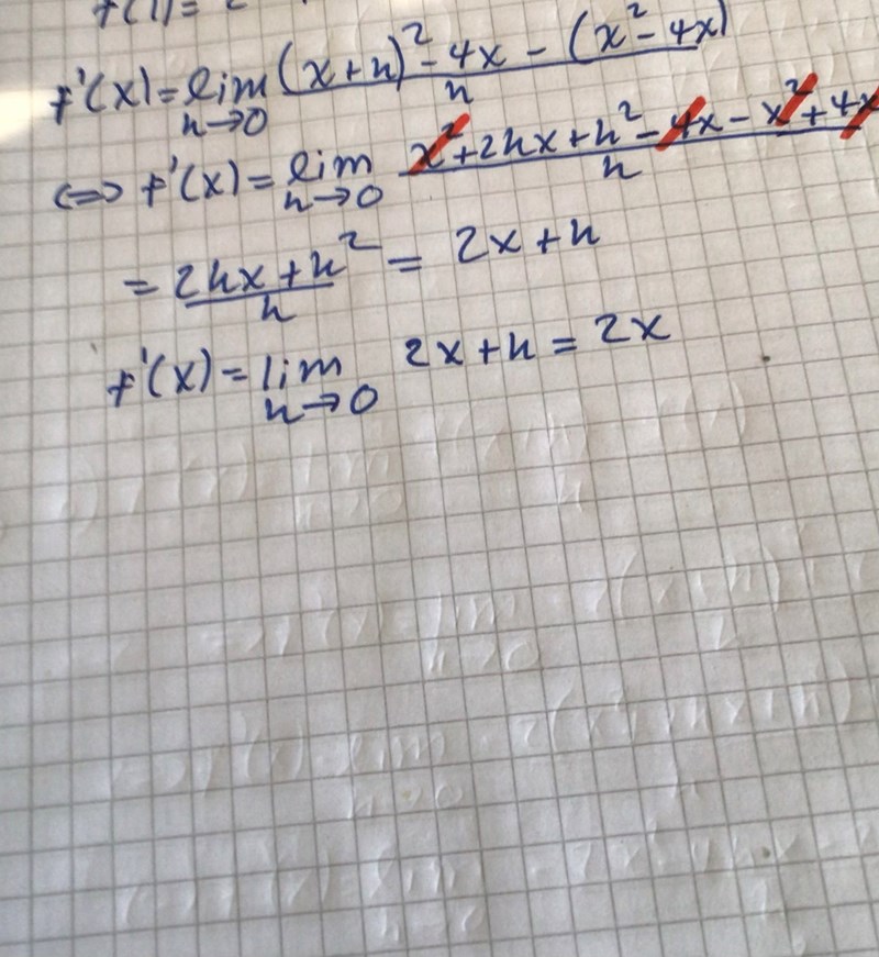 Nästan! Det skall inte vara vara 4x som andra term i täljaren på första raden, det skall vara 4(x+h).