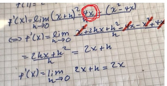 Till vänster om likhetstecknet har du skrivit f(x+h)-f(x), dvs täljaren I differenskvoten.