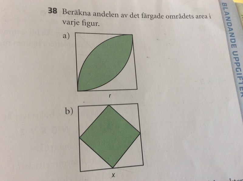 Vart ska jag börja...? Jag har ingen aning om hur jag räknar ut arean på det gröna området i figur a)