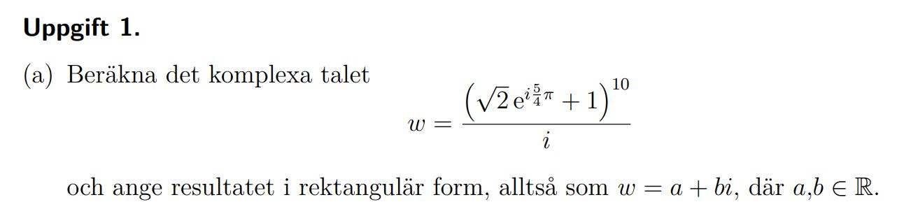 Beräkna det komplexa talet och sedan ange de resultatet i rektangulär form (gamla tenta)