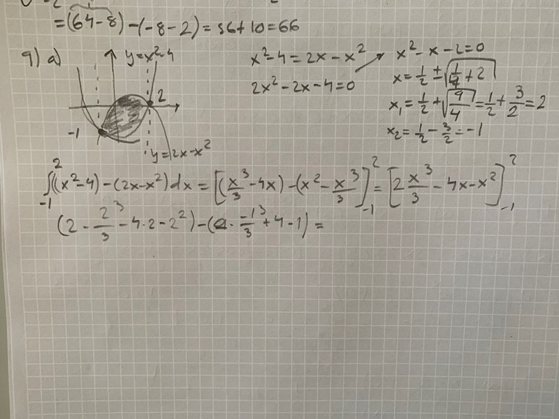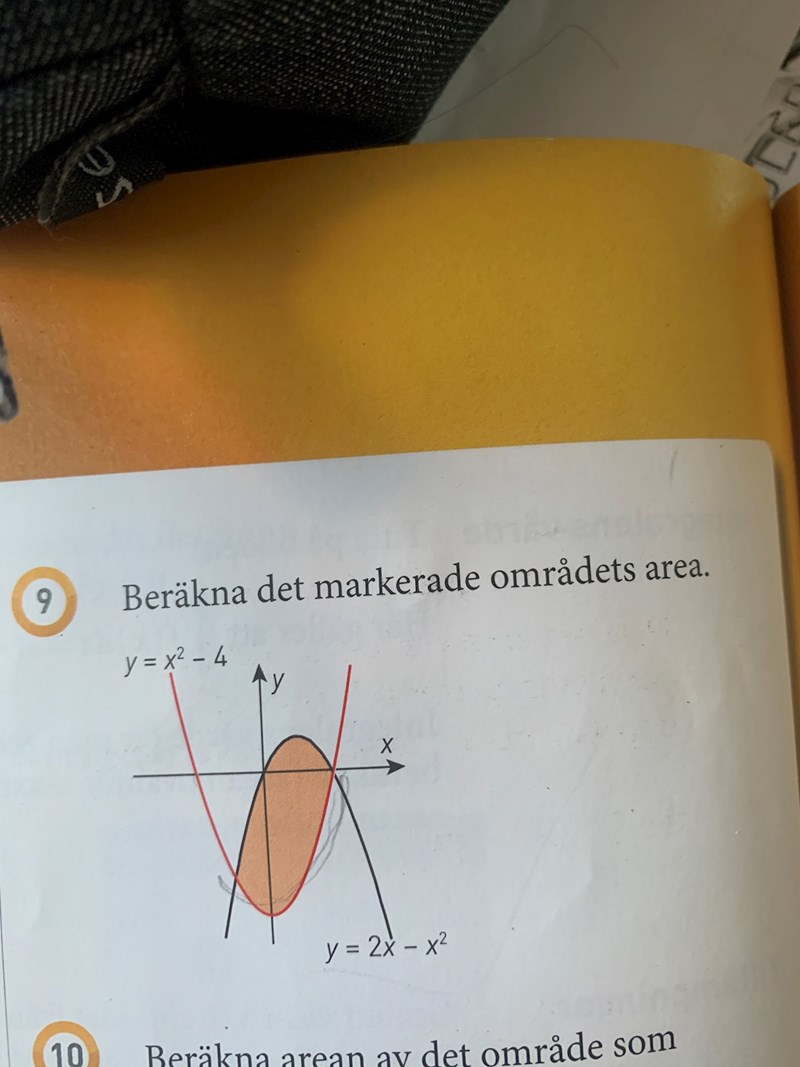 Jag förstår inte hur jag ska sätta upp integralen för att räkna ut det färgade området, kan någon hjälpa mig?