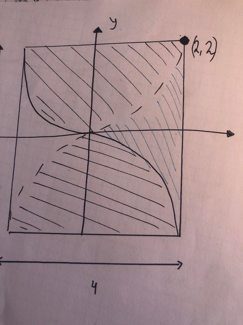 Jo, men förstår själva sättet att göra det på men vill bara få det bekräftat om integralen från 0 till 2 ger denna area nedan som är extra mörk. För att få hela den mörka delen måste jag multi med fyra.