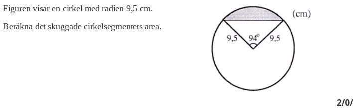 tomast80 skrev:Du är på rätt spår, men cirkelsektorns area blir: