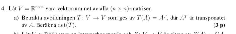 Ja juste. Men hur skriver man detta så att det ser ut som en n×n matris och man kan räkna ut det(T) som efterfrågas?