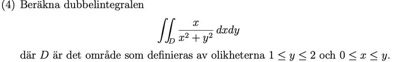 Hur räknar jag ut denna dubbelintegral? Mitt försök: