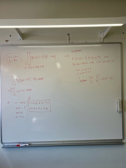 Har jag satt upp intervallen fel? För om u=8x+12y och v=8x-12y är fel så blir det ju fel i resten av uträkningen.