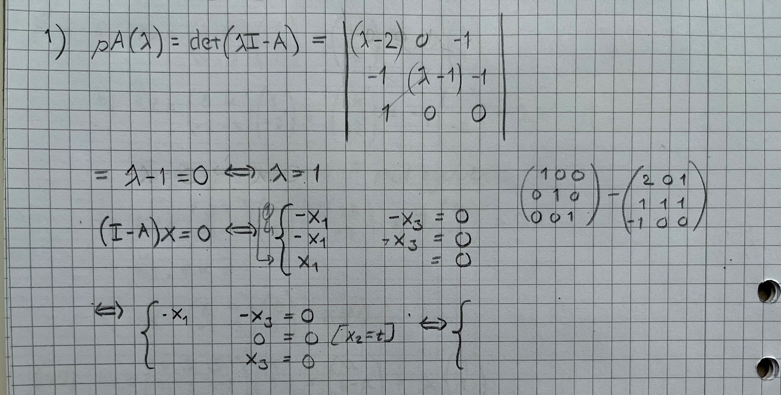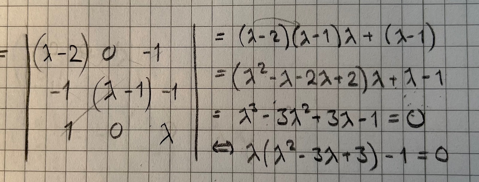 Jag tänkte att eftersom det är en 0:a där i matris A så förblir det en 0:a, men jag inser ju nu att det ska stå lambda - 0 = lambda