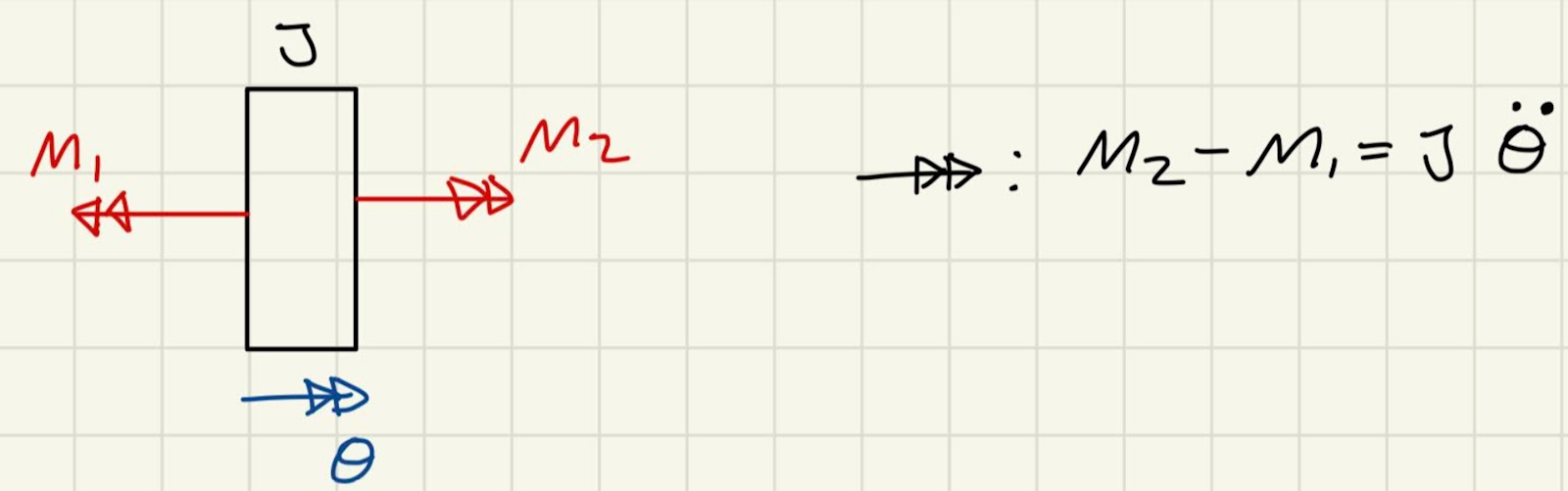Sen behöver jag ju räkna ut momenten som funktion av vinkeln, så jag använder . Eftersom jag har två moment behöver jag väl komma fram till något samband mellan vinklarna. Det ska vara att . Hur kommer man fram till det? Är det att momentet ska vara motriktat vinkeländringen? Eller ska man tänka att den totala vinkelskilnaden ska bli noll för att balken är fast inlåst?