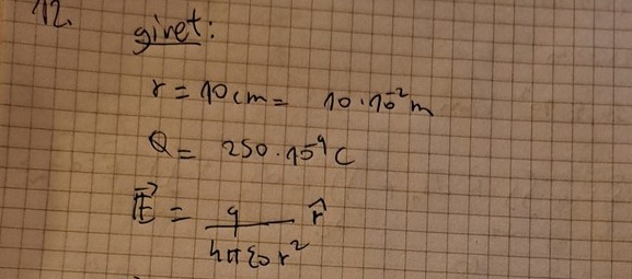 Jo det stämmer att jag använde mig av coulombs lag för en punktladdning. Såhär tänker jag mig att det ser ut , men det klickar inte riktigt vilken formel de vill att man använder sig av för att få fram fältstyrkan. Liksom fältstyrkan kommer vara åt alla håll radiellt med ytan.