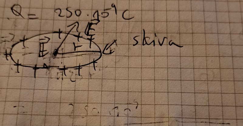 destiny99 skrev:Det finns en formel för laddningstäthet. Dessa nedan och charge densitet per Area är ju Q/A. Men sen står det i frågan att vi ska ta reda på fältet i mitten av skivan och hur ska man veta vilken E-fält formeln som passar in om fältet är vinkelrät mot skivan? Menar du att den är vinkelrät mot ytan överallt ?