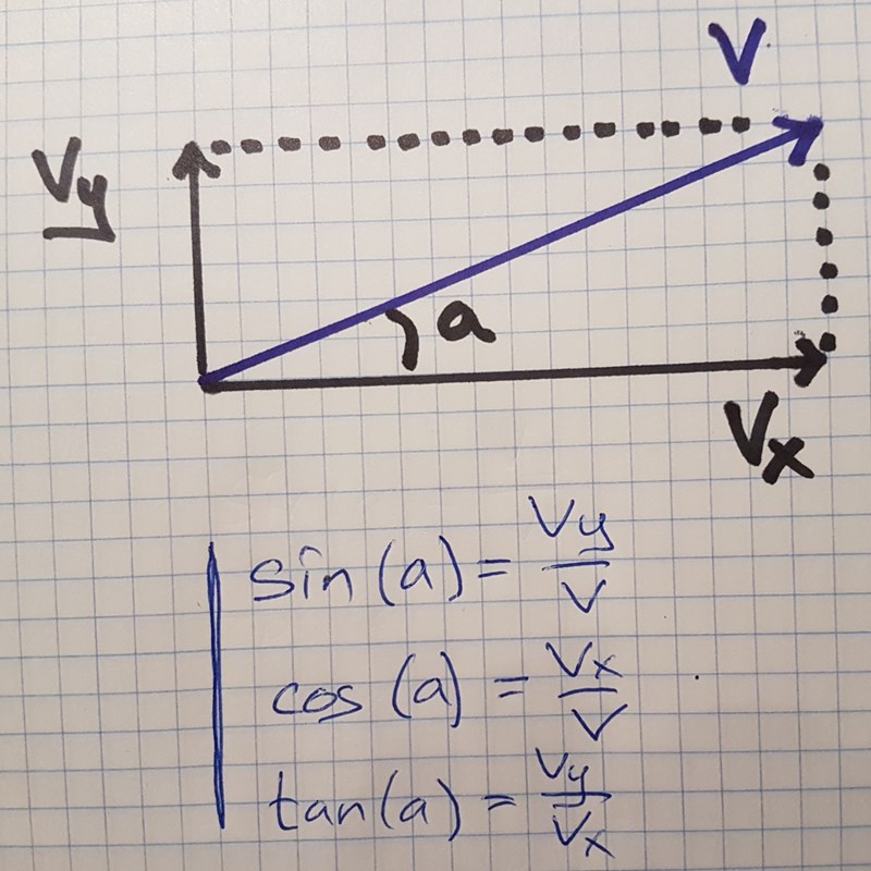 Ja jag är med på vx = sx/t. Men förstår inte varför jag ska använda vy = ay x t + v0y och inte vy = v0sina - gt? Känns lite "för" lätt då de formler du beskriver inte använts i fysik 2 utan bara i fysik 1. Hur räknar jag ut v0y då? I boken använder de ungefär en sån lösning som jag gjorde bara att jag fortsatte längre.