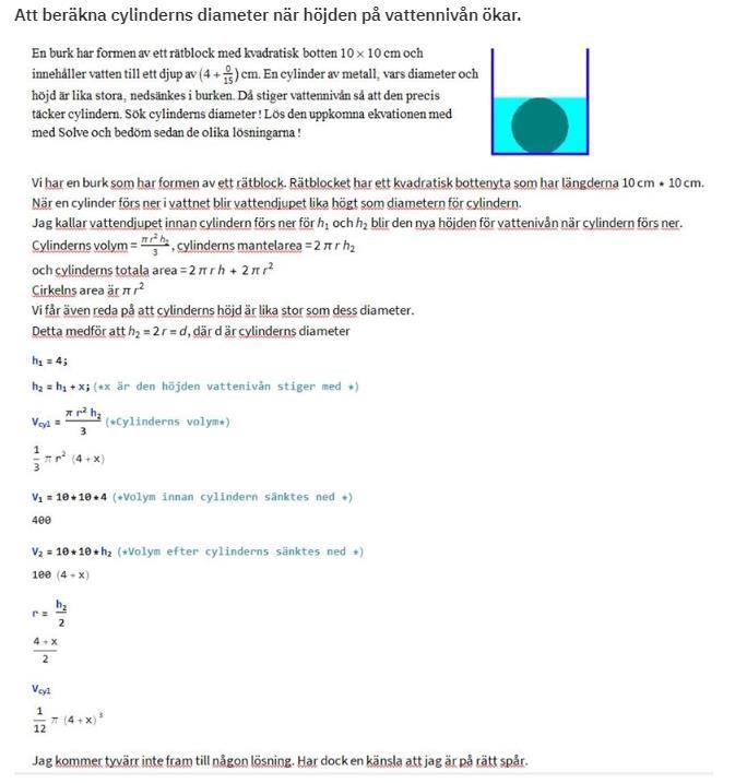 tobper19 skrev:Jroth skrev:När cylindern sänkts ned är vattendjupet 2r.