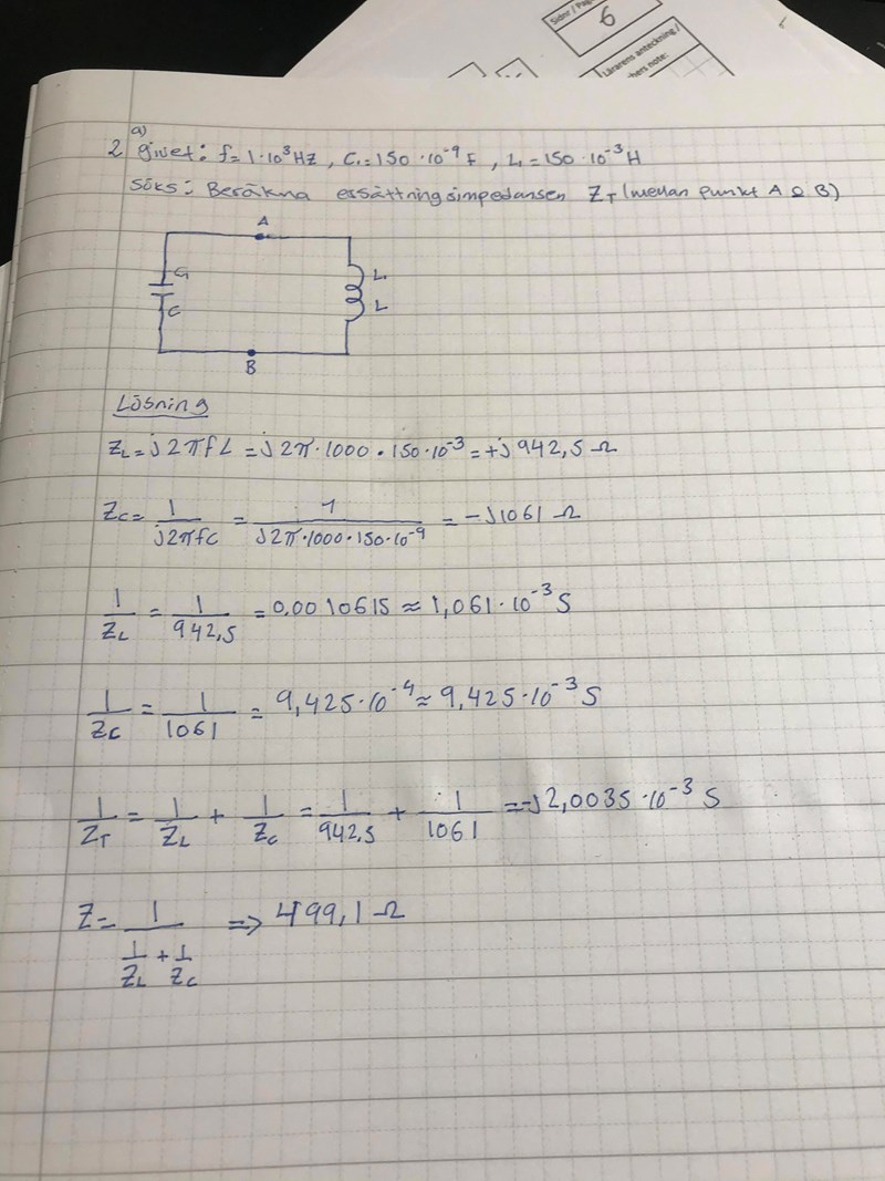 Visa dina beräkningar på hur du får fram 1/Zc , 1/ZL och 1/Z eller Z