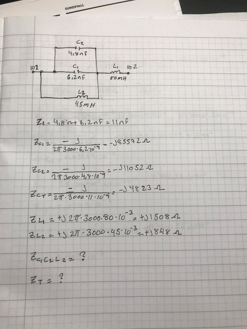 Jag har löst en del av uppgiften, men har fastnat på hur jag ska räkna Z_c1c2L2 och Z_T